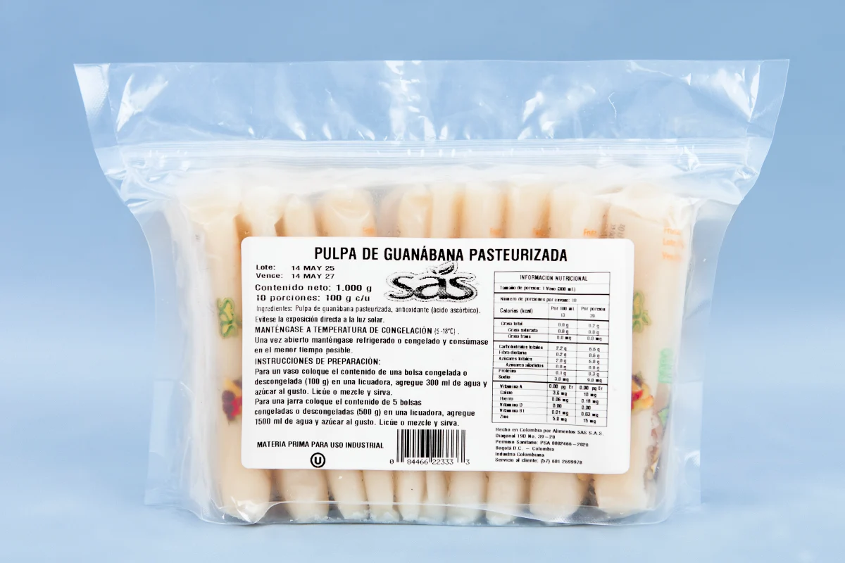 Ideal para preparar la cantidad requerida de jugo de guanábana natural, añadiendo agua potable en una proporción de 300cc por cada 100g de pulpa y licuando por 1 minuto. Sin embargo, cada quién puede usar la cantidad y tipo de líquido a adicionar, leche por ejemplo, según su propio gusto. Todo esto sin generar desperdicios al usarlas ni haber corrido el riesgo de perder frutas por pudrición.