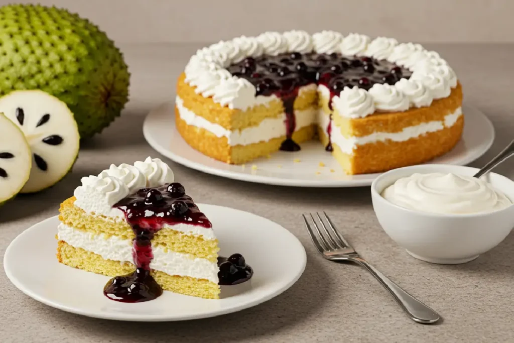 Relleno: poner en la licuadora la pulpa de Guanábana SAS, la leche condensada y la gelatina hidratada y fundida en el agua, procesar hasta homogeneidad y finalmente verter el relleno sobre el pie frío. Refrigerar todo.